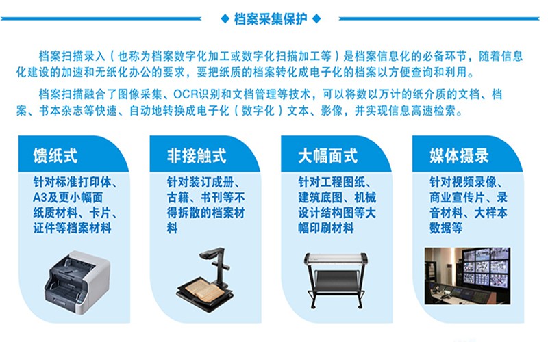 智慧收集,智慧管理,智慧監(jiān)督,智慧利用,智慧保護從源頭上保證檔案的真實,完整,可用 全方位的保護手段,提供健全的安全保障